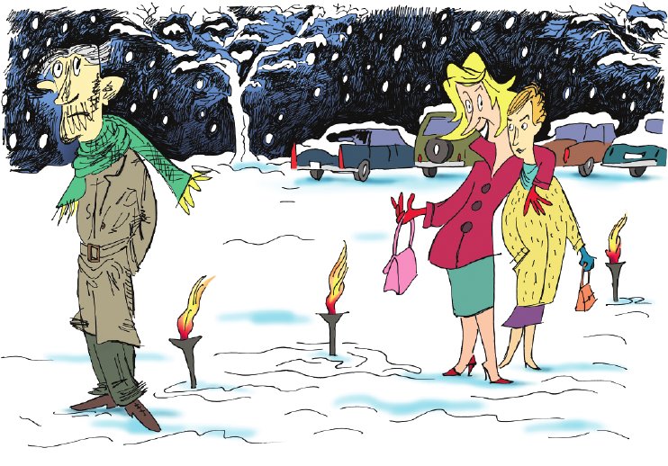 Na afloop van het concert lopen we de donkerte in. Een tweede storm heeft huisgehouden en voor een dik pak sneeuw gezorgd. Er is een pad van fakkels aangelegd tot aan de parkeerplaats. Halverwege staat de generator-dame. Ze heeft haar arm om de schouder van een vriendin gelegd. Zelfde type, maar van alles net iets minder. Minder make-up, minder opzichtig gekleed, minder hoge hakken.