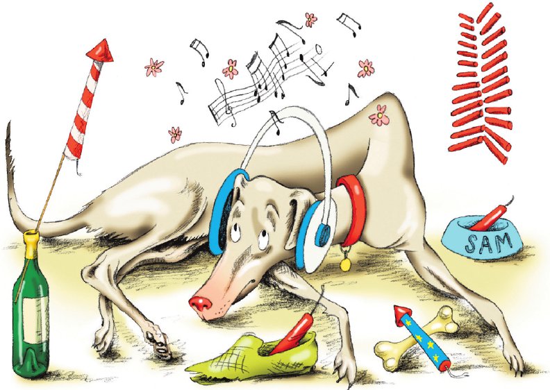 Terwijl ik in slaap probeer te vallen, denk ik aan Sam, de hond van Thomas, die in het asiel logeert. „Maak je over hem maar geen zorgen” , zei Thomas nog. „Ze draaien daar de hele nacht keiharde muziek om het knallen te overstemmen, zodat hij niet paniek raakt.”