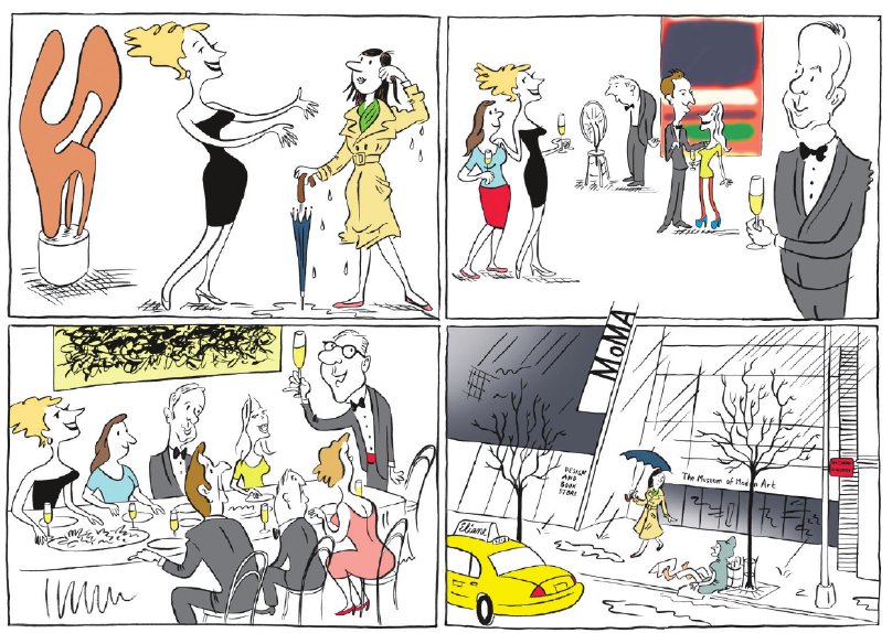 „Graag”, zeg ik, terwijl ik een natte pluk haar uit mijn gezicht veeg. Buiten giet het pijpenstelen. Manhattan is vol plassen, rondscheurende vuilnisauto’s en verregende toeristen. Ik ben in het Museum of Modern Art voor de David Rockefeller Award, ingesteld om een succesvolle filantroop in het zonnetje te zetten.