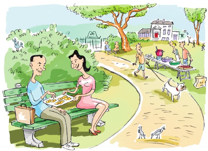 Battle Road, een lommerrijke laan achter ons huis, was afgezet voor het jaarlijkse straatfeest. Aan een einde zaten de oudere dames al te wachten in hun zondagse kleren op fauteuils. Overal gingen deuren open en kwamen mensen aankuieren met een gerecht uit hun land van oorsprong. Want ook al zijn hun overgrootouders al meer dan een eeuw geleden hier aangekomen, ook al zijn ze zelf nooit in het land of zelfs maar het continent van herkomst geweest, Amerikanen koesteren hun wortels. Zo stond de pan borsjtsj gebroederlijk naast de schaal met taboulé, de tzatziki naast de lasagne. Als Nederlander weet ik bij dergelijke gelegenheden nooit wat ik moet meenemen. Bitterballen zijn erg lastig zelf te maken en voor sateetjes moet je ketjap hebben, iets waar je hier niet zo makkelijk aan komt. Ik had madeleines gebakken. Die hebben weliswaar niets met Nederland te maken, maar komen in ieder geval uit Europa.