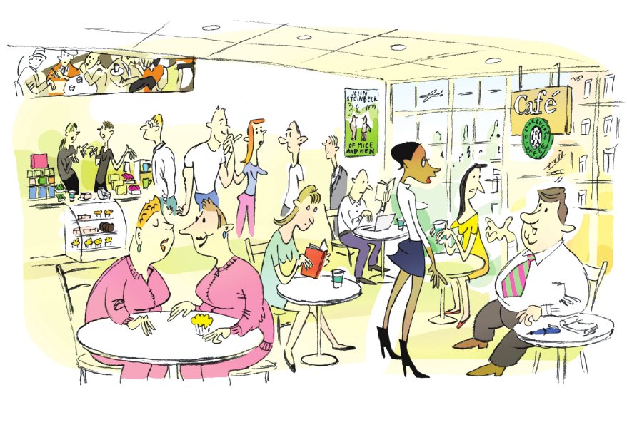 ‘Zo, welkom in mijn kantoor”, zegt de vadsige man aan het tafeltje naast me tegen het tengere meisje, dat schuchter aan komt lopen. Ik wacht bij het raam op mijn afspraak in de Starbucks van boekhandel Barnes & Noble in New York, op de kruising van Fifth Avenue en 46nd Street. Het is 10 uur in de ochtend. Bloedheet, vanwege die verraderlijke Indian summer.