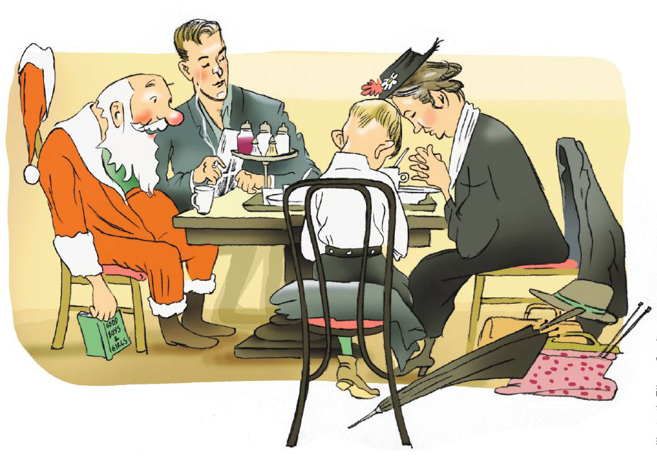 Rockwell schilderde de taferelen die diep in het collectieve kerstonderbewustzijn huizen. Een blozende Kerstman in zijn arrenslee, kerstsokken boven de haard met verlanglijstjes, oude mensen die een voordeur opendoen waarvoor gemutste kleinkinderen staan te trappelen. Dit is pure nostalgie, maar naar een tijd die nooit bestaan heeft.
